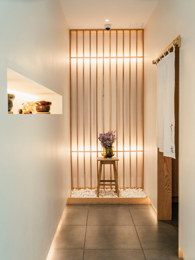 « Ce passage invite à un changement à la fois mental et émotionnel », explique le chef propriétaire Ju Hyun Li. « C’est une pause intentionnelle avant d’entrer dans l’espace intime de la salle à manger. »